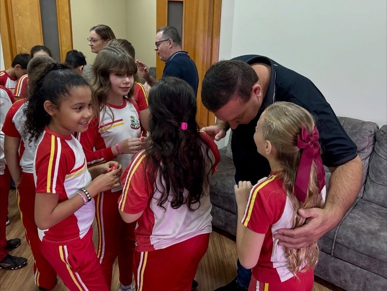 Alunos do 4º ano da Escola José de Alencar, de Três Irmãs, visitaram na manhã desta quarta-feira (15) o Gabinete do Prefeito Laerton Weber. A atividade integra o projeto “Conhecendo o Município”, que busca aproximar os estudantes da administração pública e mostrar, de forma prática, como funciona a Prefeitura.