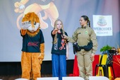 animando o público e simbolizando o compromisso do projeto com a prevenção.