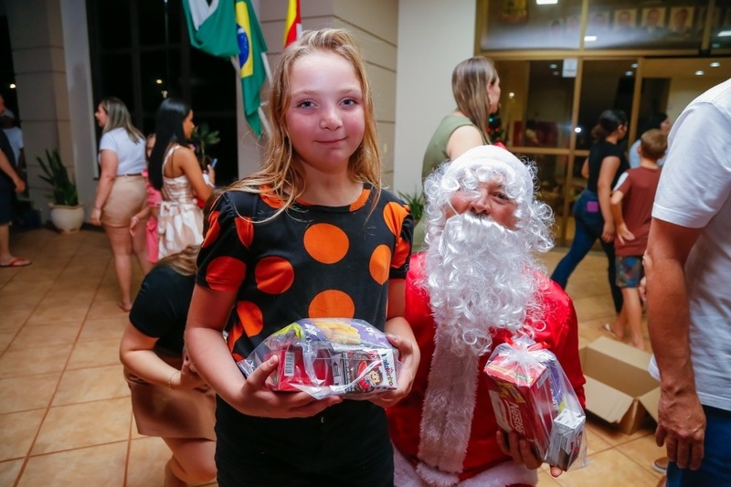 distribuiu presentes às crianças em uma ação realizada pela Prefeitura de