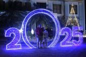 gigante, um presépio luminoso, bolas e pisca-piscas, criando um ambiente mágico,