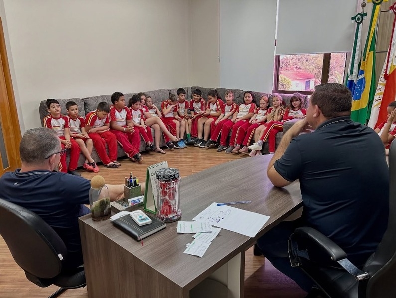Alunos do 4º ano da Escola José de Alencar, de Três Irmãs, visitaram na manhã desta quarta-feira (15) o Gabinete do Prefeito Laerton Weber. A atividade integra o projeto “Conhecendo o Município”, que busca aproximar os estudantes da administração pública e mostrar, de forma prática, como funciona a Prefeitura.