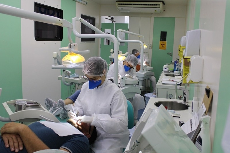 com quatro consultórios, sala de esterilização e sala de raio-X, oferecendo