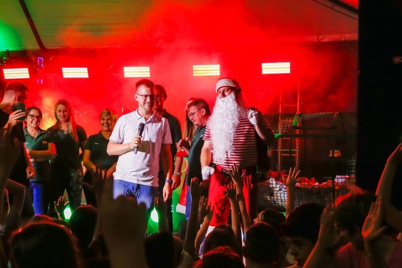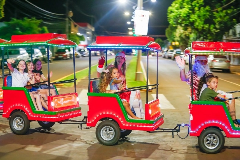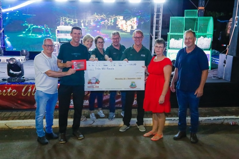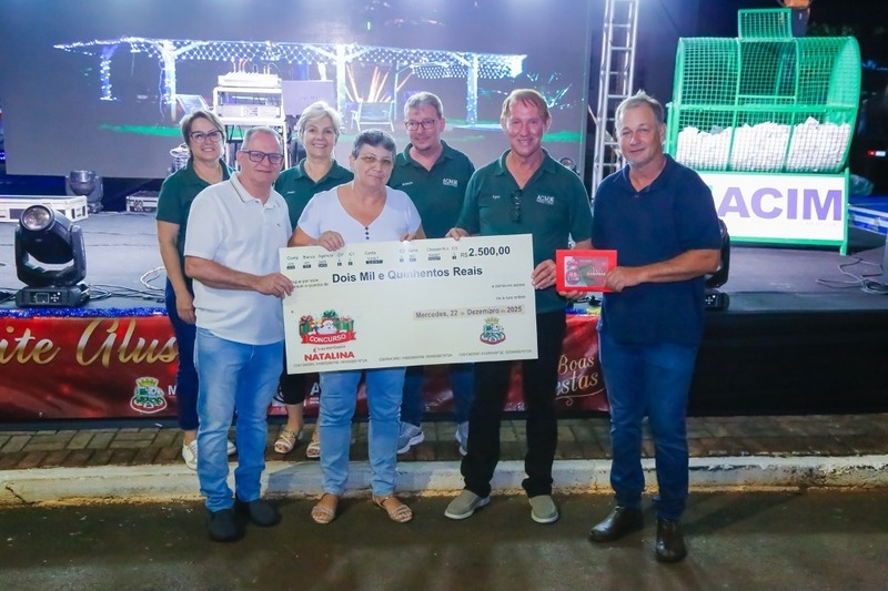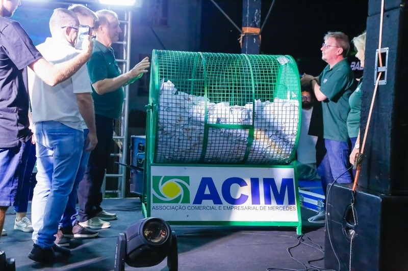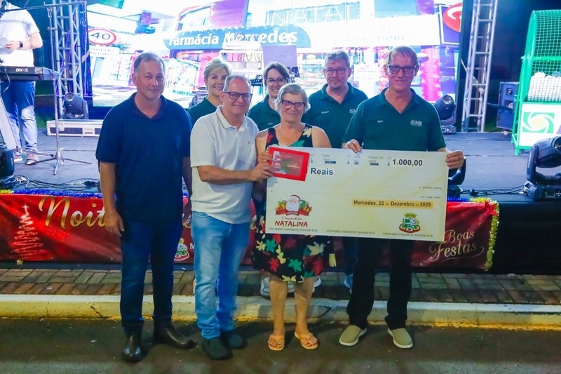 Centenas de pessoas participaram, nesta segunda-feira (22), da Noite Alusiva ao Comércio, em Mercedes. O evento movimentou a Praça Central e ofereceu uma programação diversificada, com passeios nos Trenzinhos da Alegria, brinquedos infláveis para as crianças, show ao vivo, praça de alimentação, entrega de doces pelo Papai Noel e o sorteio da Campanha de Natal da Associação Comercial e Empresarial de Mercedes (Acim).