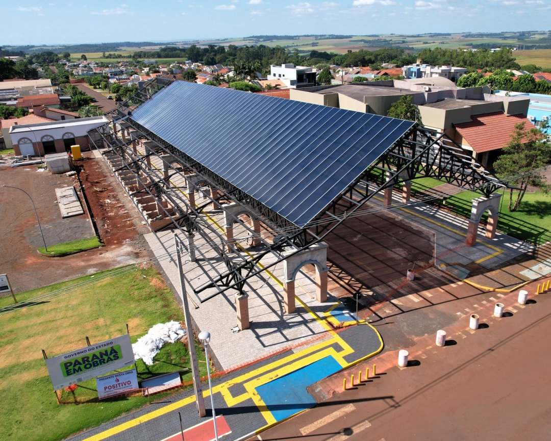 Além da cobertura, a obra avança em diversas frentes de acabamento. Está em andamento a instalação dos tijolos maciços aparentes, o calfinamento das estruturas para posterior pintura, bem como a instalação do sistema de para-raios e da rede elétrica. Já nos próximos dias, o local deverá receber a capa asfáltica, etapa importante para a finalização da infraestrutura.