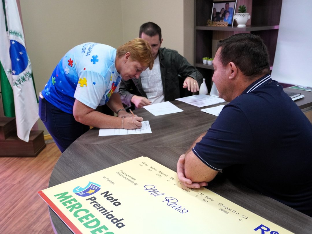 A entrega dos prêmios do 2º sorteio do Programa Nota Premiada Mercedes foi realizada nesta quarta-feira (8), na Prefeitura. Ao todo, foram repassados R$ 2 mil aos contemplados do sorteio referente ao mês de março.