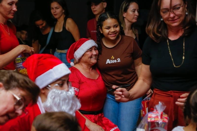 distribuiu presentes às crianças em uma ação realizada pela Prefeitura de