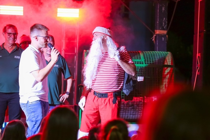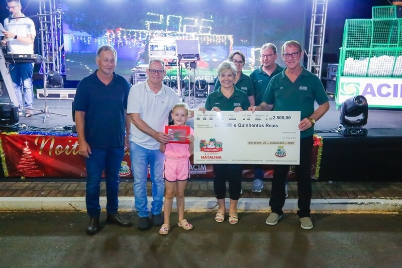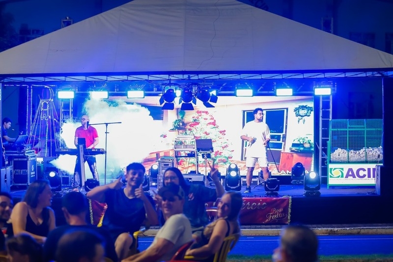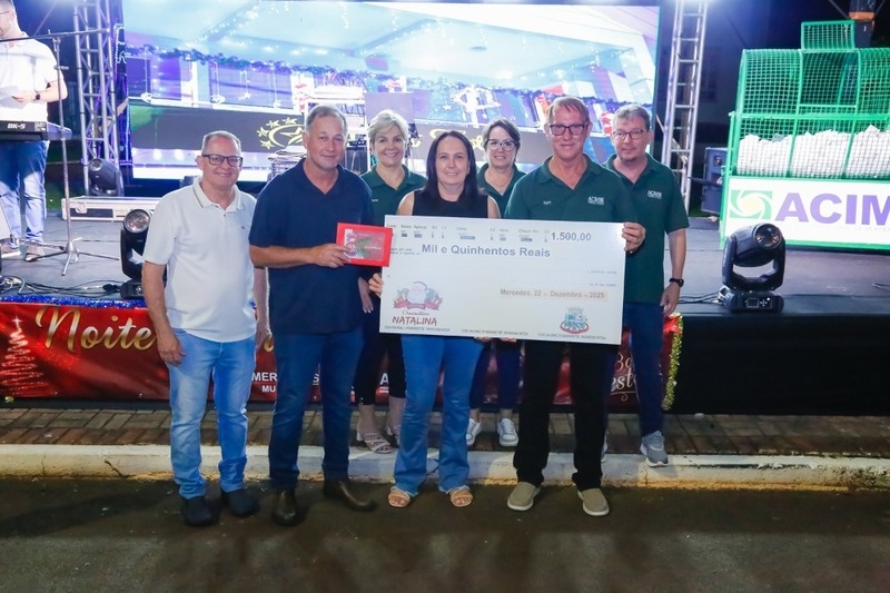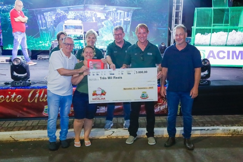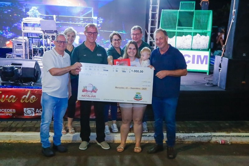 Centenas de pessoas participaram, nesta segunda-feira (22), da Noite Alusiva ao Comércio, em Mercedes. O evento movimentou a Praça Central e ofereceu uma programação diversificada, com passeios nos Trenzinhos da Alegria, brinquedos infláveis para as crianças, show ao vivo, praça de alimentação, entrega de doces pelo Papai Noel e o sorteio da Campanha de Natal da Associação Comercial e Empresarial de Mercedes (Acim).