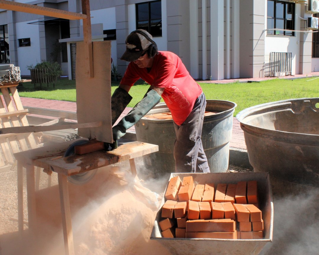 A Construtora Positivo, responsável pela execução, também atua nos acabamentos internos. Os banheiros e a sala de espera destinada aos pacientes da saúde recebem porcelanato e massa corrida, enquanto os muros dos boxes seguem em fase de reboco.