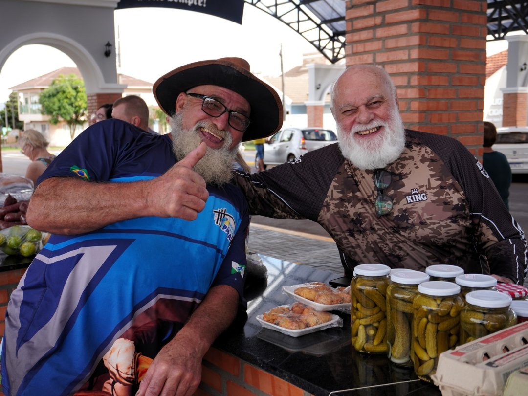Entre as opções, o público encontra panificados, verduras, frutas, conservas, salames, cachaça artesanal, além de espetinhos, salgados, doces e outras delícias — tudo podendo ser consumido no local ou levado para casa.